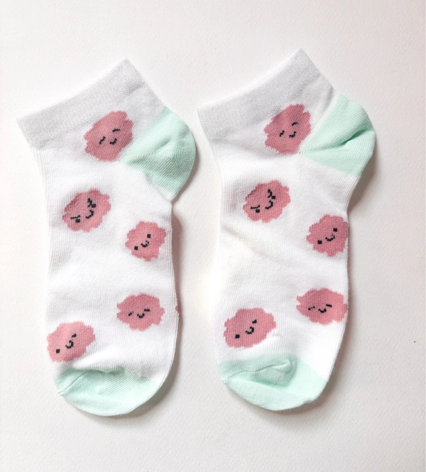 White-Aqua Ankle Length Socks